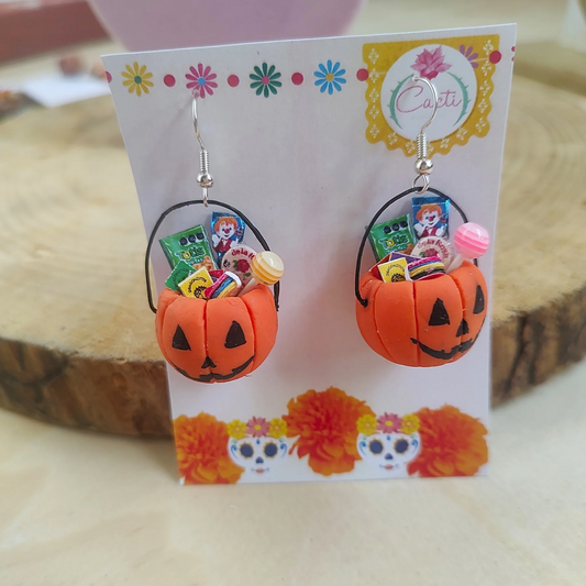 Aretes de calabaza de Halloween con mini dulces mexicanos