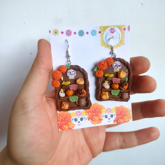 Aretes mini altar de Día de Muertos – Artesanía hecha a mano