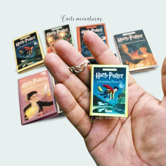 Llaveros de Minilibros Artesanales – Saga Harry Potter (8 piezas + pócima de regalo)